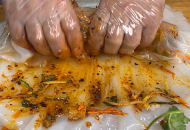 1、老师实战示范,讲解卷凉皮技术要点并带领学员回忆理论阶段材料选择、酱料搭配的知识点